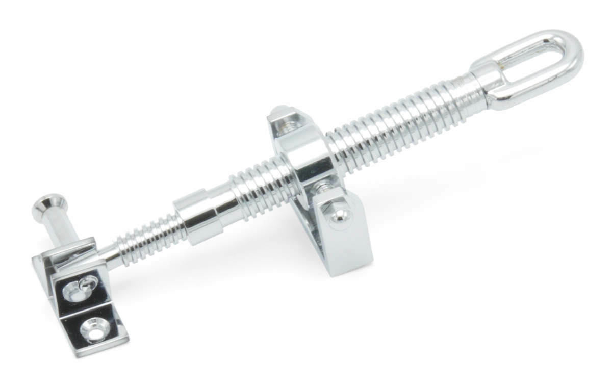Short telescopic screwjack with with small brackets and a polished chrome finish.