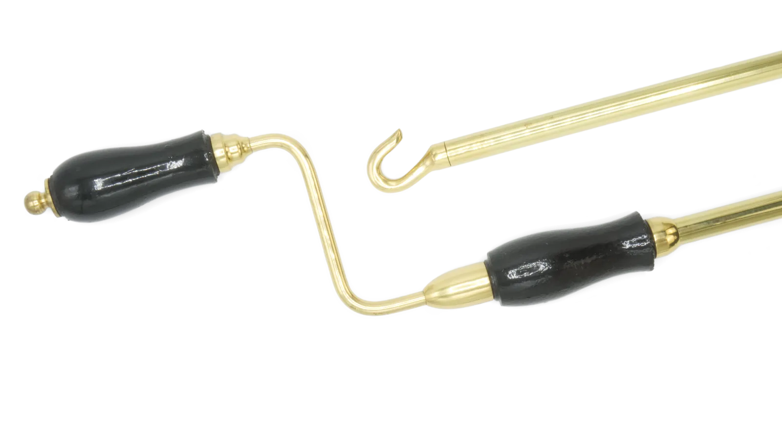 These winder poles are manufactured by hand with a hollow brass tube to keep the weight low. The components are secured with solid brass pins and all metal work is lacquered for durability. These window opening poles are suitable for use with our single and twin thread eyelet screwjacks.